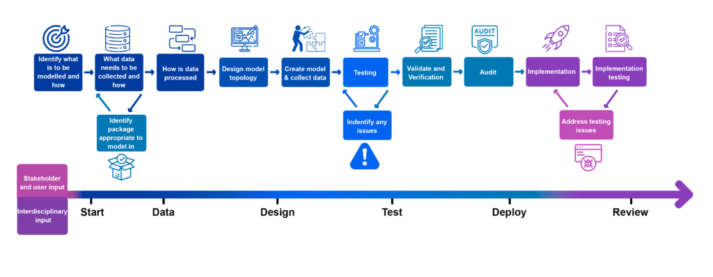 This means that all the other steps (you can see this in the academic methodology diagram below) are all associated with the human aspect of development. We have to consider legal aspects, human impact, ethics, stakeholder direction and data methodology. If you are a subject matter expert, say a geographer, you also need to know the process because you will be asked to be a part of it.